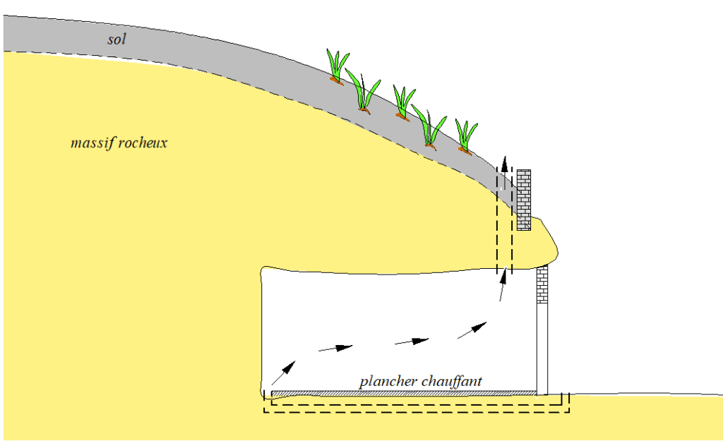 Une première technique est de creuser un conduit d’aération en fond de salle, afin de créer