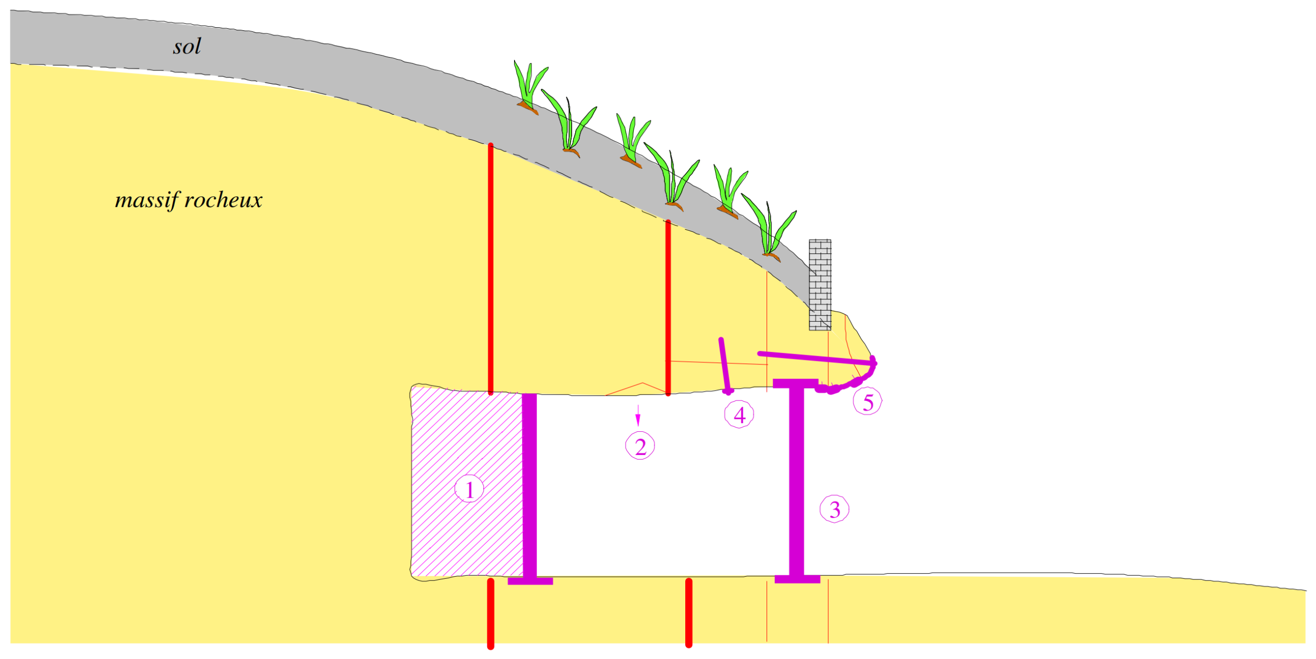 On rappelle que ces travaux nécessitent l’intervention d’entreprises spécialisées ou bénéficiant d’une bonne expérience en la matière. Enfin, outre la mise en œuvre de ces différentes techniques de confortement, on rappelle que la stabilité du coteau et des caves passe par la maîtrise de l’eau et de la végétation (cf. les fiches spécifiques du CTATP).